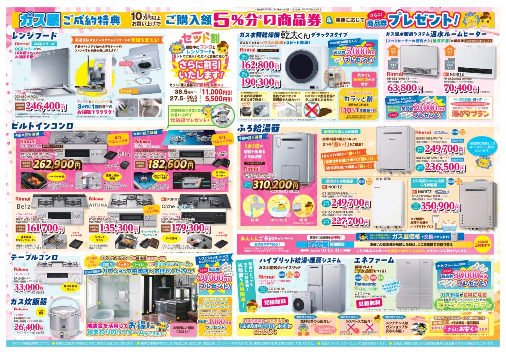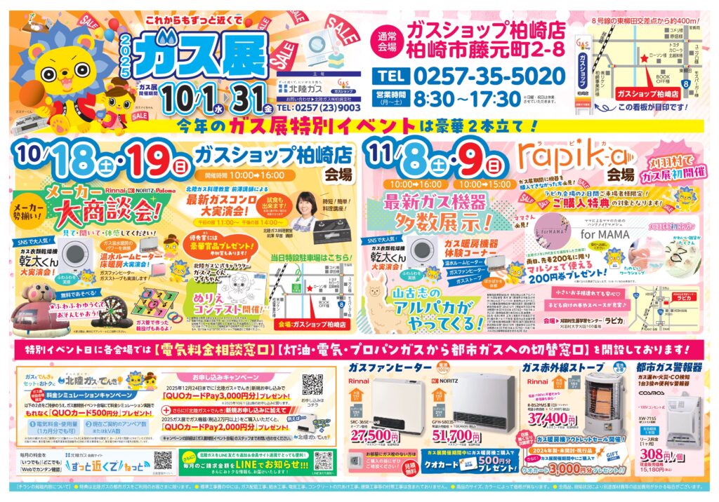 10/18.19はガスショップ柏崎店でガス機器メーカー大商談会も開催します!